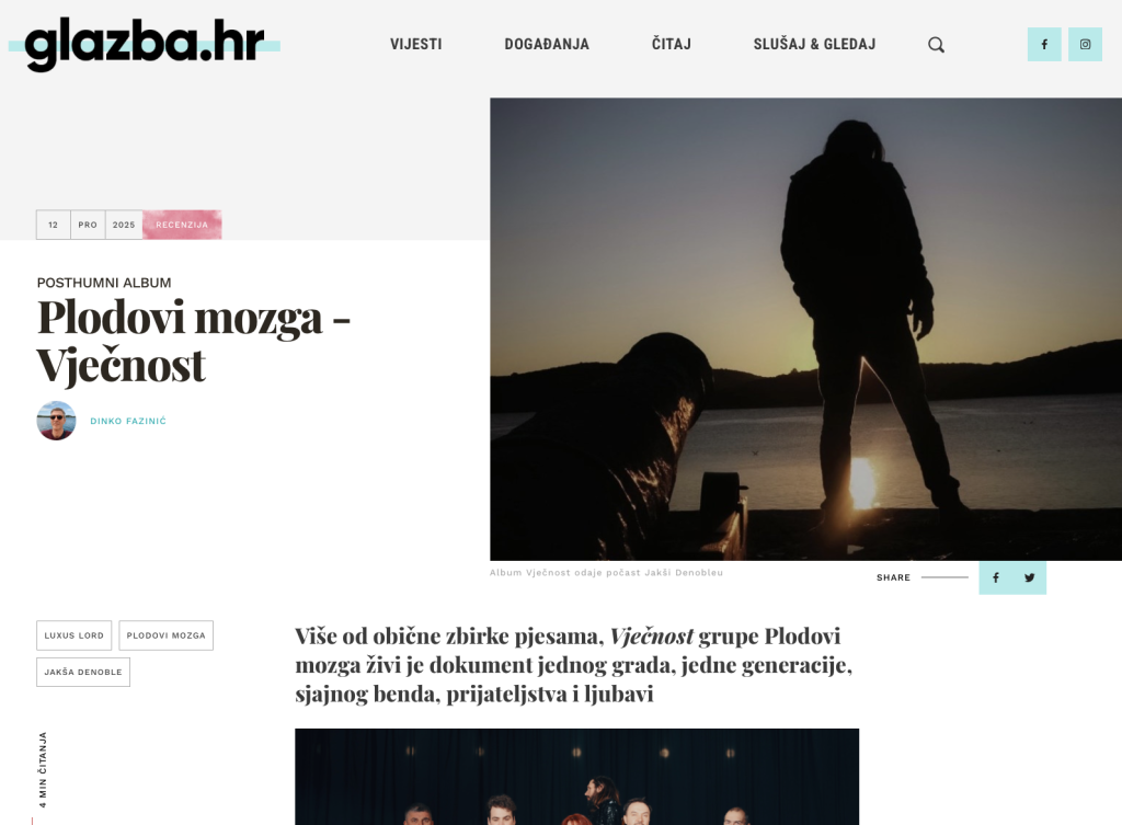 Na središnjem hrvatskom glazbenom portalu “Glazba.hr” objavljen je članak Dinka Fazinića pod naslovom “Plodovi mozga – Vječnost” Više od obične zbirke pjesama, Vječnost je živi dokument jednog grada, jedne generacije, sjajnog benda, prijateljstva i ljubavi. Istovremeno tužan i zabavan, neposredan…